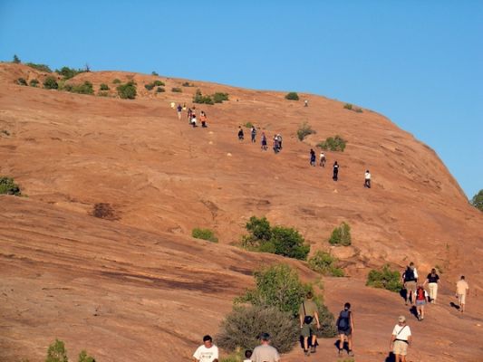 Eine ganz andere Herausforderung ist der Trail zum Delicate Arch, den wir anschließend mit hunderten anderer Touristen antreten.