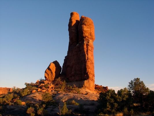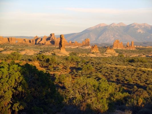 Gegen Mittag sind wir zurück in Moab. Nach einer kurzen Pause am Pool machen wir uns auf den Weg zum Arches, dessen mörderische Hitze im letzten Jahr unvergessen ist. Die damaligen 40° C bis in die Abendstunden raubten uns die Luft zum Atmen und auch den Spaß an den Steinbögen. Die heutigen 10° weniger sind immer noch genug, aber erträglich.