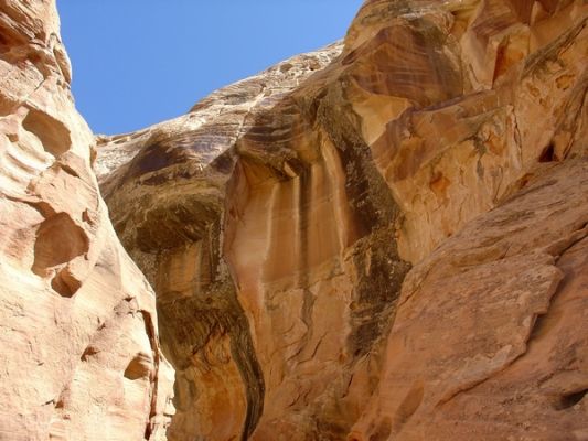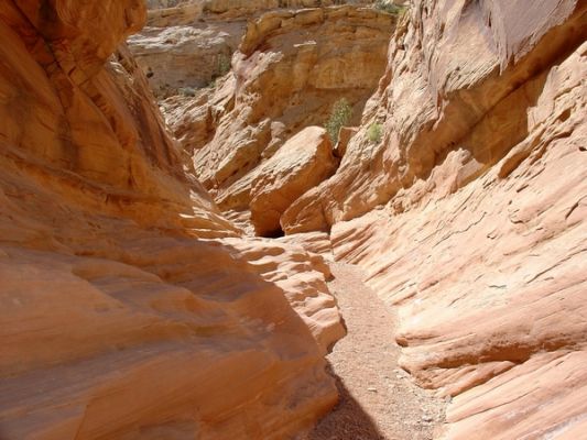 Einige 100 Meter weiter teilt sich der Weg und führt links in den Bell-Canyon und rechts in den Little Wild Horse Canyon. Da es sich um einen Rundweg handelt, bietet sich der Besuch beider geradezu an. Unser "Knie" zwingt uns aber auch hier mal wieder zu einer Entscheidung und so entschließen wir uns für den Little Wild Horse Canyon. Diesen laufen wir 30 wunderschöne Minuten, bis Jürgen das Kommando zur Umkehr gibt.