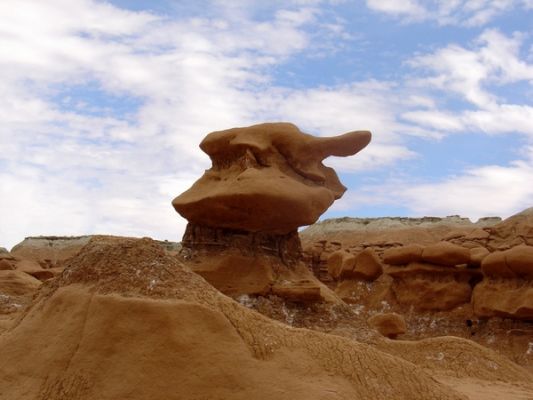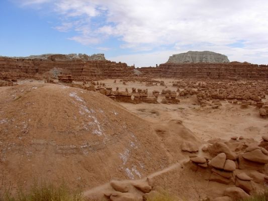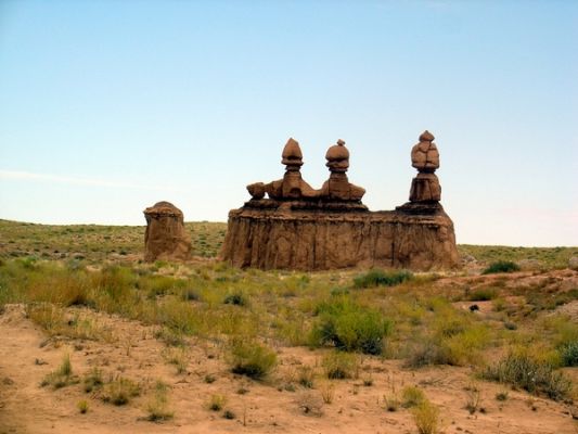 Inzwischen hat sich der Himmel leider zugezogen. Schade, da wir jetzt noch das wenige Meilen entfernte Goblin Valley besuchen wollen. Schon auf der Fahrt dorthin begrüßen uns Tick, Trick und Track.