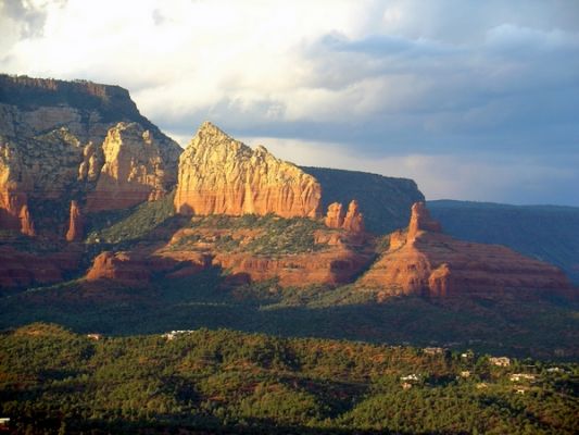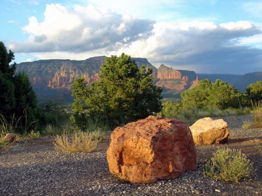 Gegen 17.30 Uhr erreichen wir Sedona. Pünktlich hört es auf zu regnen und der Himmel reißt etwas auf. Wir steuern zuerst das Visitorcenter an, erfragen den Weg zu unserem Motel und holen uns einige Tipps. Dann fahren wir weiter zu einem Viewpoint, um von dort den Sonnenuntergang zu beobachten. Obwohl die Sonne sich heute schwer tut, ist es doch immer wieder schön, die angestrahlten roten Felsen zu beobachten.