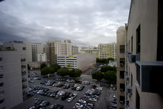 Mein Plan sieht vor, dass ich die letzte Woche unter Anderem nutze, um downtown Nachtaufnahmen zu machen. Da ist der Standort in der Grand Ave ideal, und ich fühle mich schon längst sicher genug in der Umgebung, um hier nächtens meine Kameras spazieren zu führen. Das bisher ungenutzte Stativ (ein sehr stabiles, aber nicht unbedingt wandertaugliches Gitzo) habe ich aus seinem Gefängnis im Kofferraum befreit. Jetzt muss also nur noch das Wetter mitspielen!