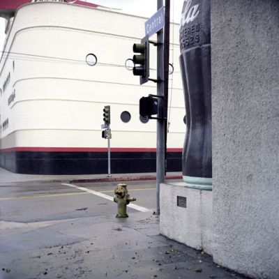 Ich wache um 5.00 Uhr auf, weil ich viel zu früh und viel zu alleine schlafen gegangen bin. Gegen sechs ist es hell, ich stehe auf, beäuge mißtrauisch den Himmel (undeutbar) und marschiere zwecks Frühstück zum schon eingangs mal erwähnten Clifton’s, weil ja jeder eine zweite Chance verdient... und weil er um diese frühe Stunde schon auf hat. Oat Meal mit Rosinen, Bananen und dazu Kaffee für rund 4 Dollar ist doch OK. Der Elch bricht immer noch aus dem Unterholz, ich hingegen breche auf und marschiere gefühlte 10, tatsächlich aber rund 6 Stunden durch Downtown und belichte wieder einige Rollen Film, unterbrochen nur von einem flinken Kaffeepäuschen im LA Cafe, wo ich schon vermisst wurde. Kaum ist man mal ’ne Woche nicht da... Das Mädel, das dort den Kaffee macht, bewundert meine altertümlich wirkende zweiäugige Rolleiflex und fragt, woher ich eigentlich käme – bei meiner Freundin hätte man ja einen deutschen Akzent bemerkt, aber ich käme doch sicher aus Irland... ach du gute Güte... ich weiß nicht recht, ob ich das als Kompliment verstehen soll. Mal abgesehen davon, dass ich in meinem ganzen Leben noch nie in Irland war, bemühe ich mich doch so um einen amerikanischen Klang. Mist. Da muss ich wohl noch fleißig üben.