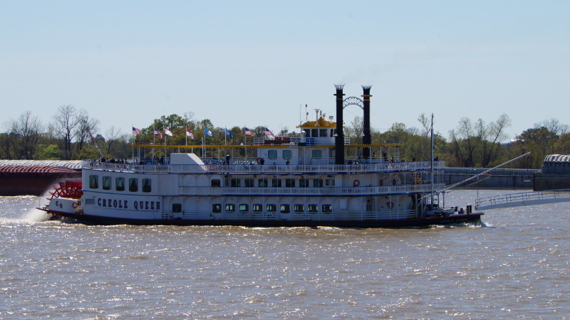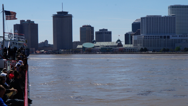 Um 11 Uhr sollten wir dann am Ableger vom Mississippi Dampfer Natchez sein, da wir ja am Vorabend uns kurzfristig Tickets für eine 2-stündige Rundfahrt auf dem Mississippi buchten. Wir waren erst nach 10 nach 11 dort, schnell den Voucher am Schalter eingelöst und ab auf’s Schiff.