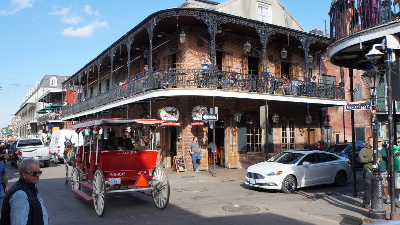 Eigentlich wollten wir noch durch den Garden District streifen aber die Zeit war schon fortgeschritten, daher fuhren wir wieder mit der Trambahn zurück zur Canal Street. Von dort liefen wir über die Bourbon Street, wo bereits nachmittags wieder der Bär steppte.