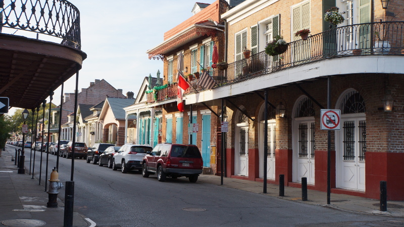 Nach dem gelungenen Frühstück liefen wir pappsatt bei blendendem Wetter durch die Strassen und schauten uns die netten Häuser an. NOLA entwickelt sich hier zu unserer Lieblingsstadt, vielleicht zusammen mit Charleston in SC. Über die Frenchmen Street, wo um diese Zeit schon aus einigen Lokalen Livemusik erschallte, liefen wir zum French Market und bummelten durch die Stände und Geschäfte.