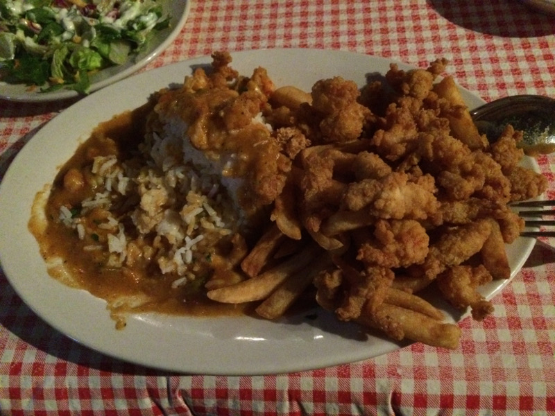 Zum Essen liefen wir eine Stunde später zum Crescent City Brewhouse. Unterwegs begegneten wir noch einem musikalischen Strassenumzug. Im Brewhouse verriet der Blick in die Karte einigermassen saftige Preise. Ich hatte ein hier selbst gebrautes „Weiss Beer“ und Roasted Duck mit Grünkohl und einem Semmelknödel, alles sehr lecker und gut zubereitet. Wir können das Lokal empfehlen, obwohl nicht ganz preiswert.