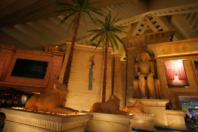 Nachdem wir unser Zimmer in Augenschein genommen haben und uns häuslich eingerichtet haben nehmen wir uns ein Taxi das uns vor zum Luxor bringt. Natürlich auch wieder nicht über den Strip. Warum das Luxor? Bei meinem letzten Besuch habe ich dort genächtigt und ich will den Mädels zeigen wie riesig das Hotel ist. Außerdem ist es Zeit fürs Abendessen. Ich bin selbst ganz erstaunt wie schnell ich das Buffet im Luxor wiederfinde. Wir schlagen uns erst mal den Bauch voll und die Mädels sind von dem reichhaltigen Angebot an Speisen und von dem ganzen Themenhotel begeistert.