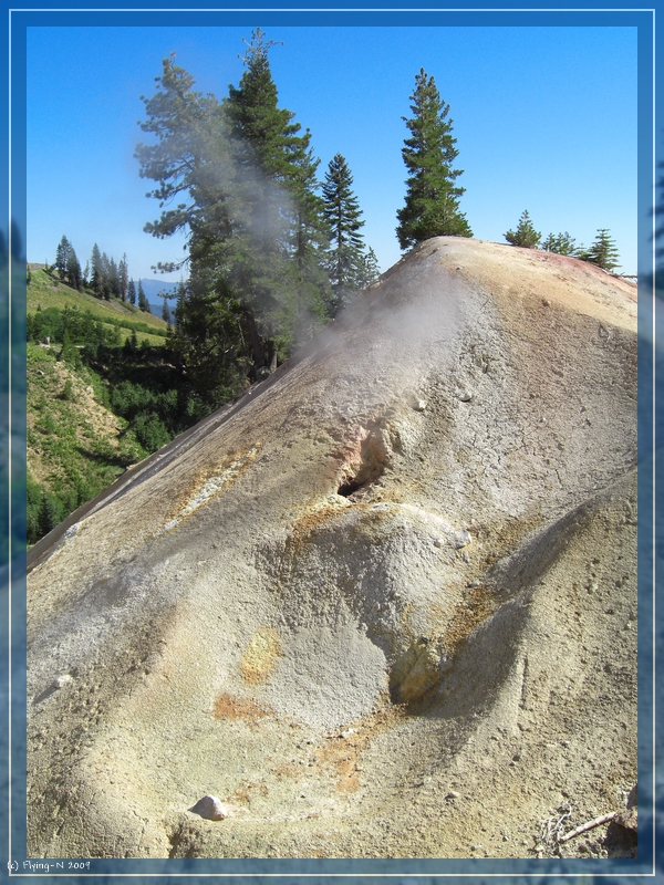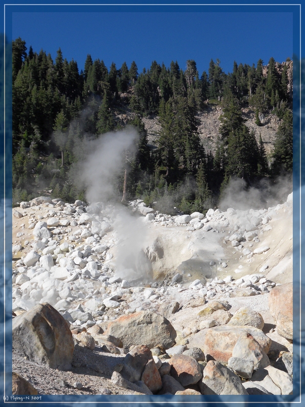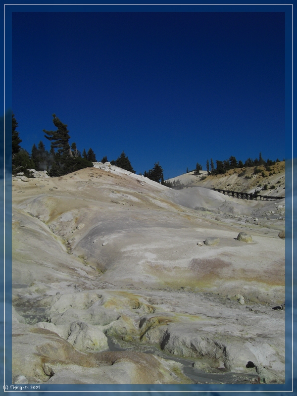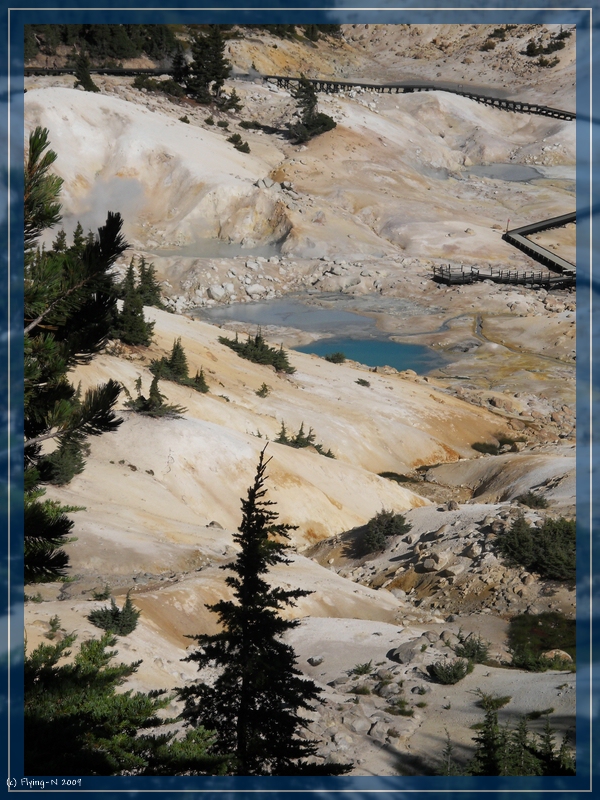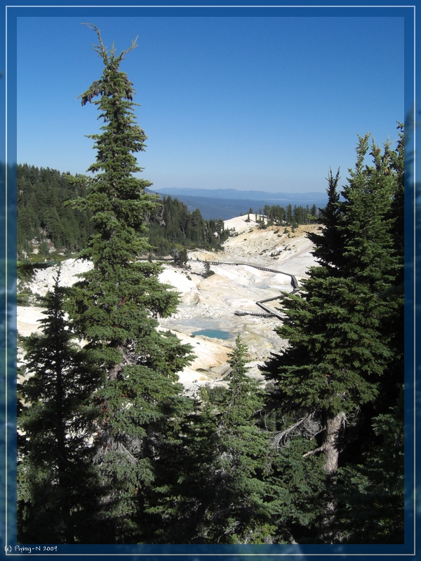 Nach dem Mittagessen schauten wir uns den Info-Film im Auditorium an, bevor wir uns „live“ alles weitere anschauten: Sulphur Works, Emerald Lake, Bumpass Hell. Die Wanderung zu Bumpass Hell gestaltete sich langwieriger als gedacht, lohnte sich aber auf jeden Fall (überall blubbert, brodelt, dampft und zischt es) – nur stand die Sonne schon recht tief, als wir wieder beim Parkplatz angelangten.