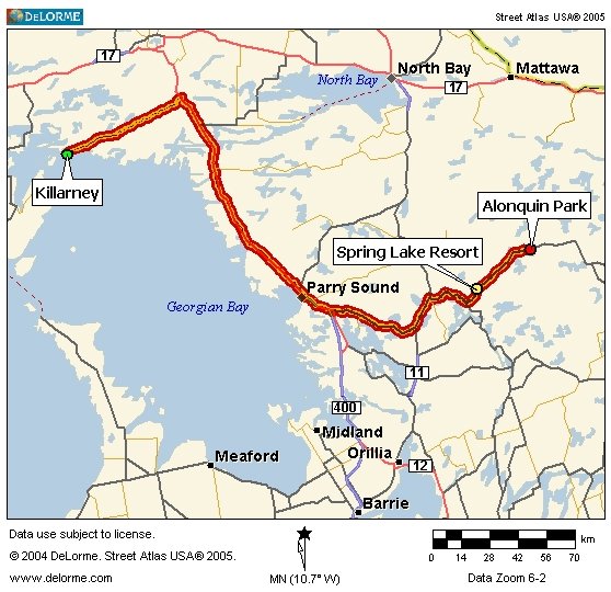 Irgendwann geht dann doch ein Ruck durch die Blechlawine und wir fahren weiter nach Parry Sound und legen dort unsere Mittagspause ein – danach geht’s über Huntsville und über den Highway 60 zu unserer „Stützpunkt“ für diesen und zwei weitere Tage  - zum Spring Lake Resort, nur wenige Kilometer vom Westeingang des Algonquin Provicial Parks entfernt.