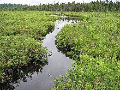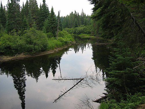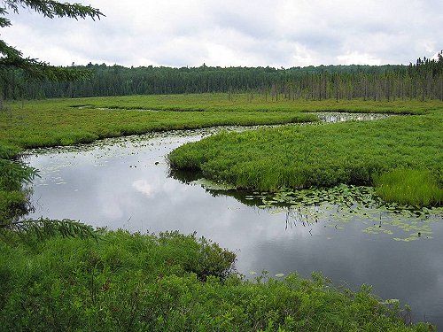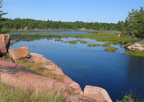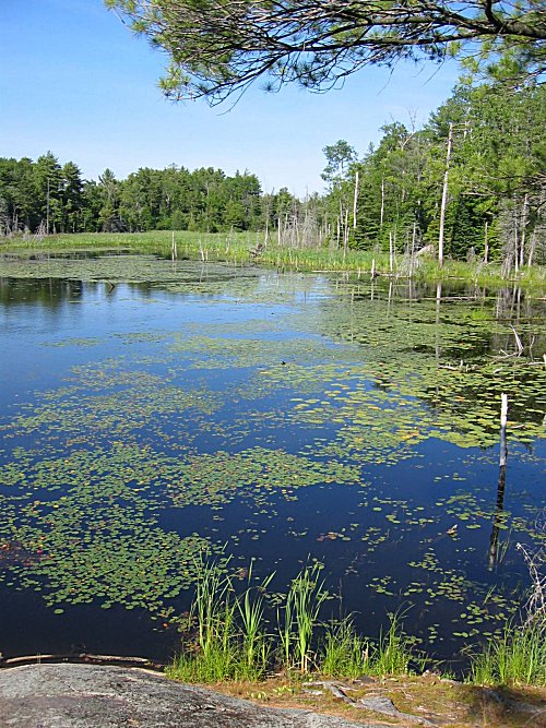 ............ vorbei an typischer Algonquin-Landschaft mit einigen kleinen Tümpeln, einem kleinen Fluß, Marschlandschaft und natürlich einigen Waldstücken.
