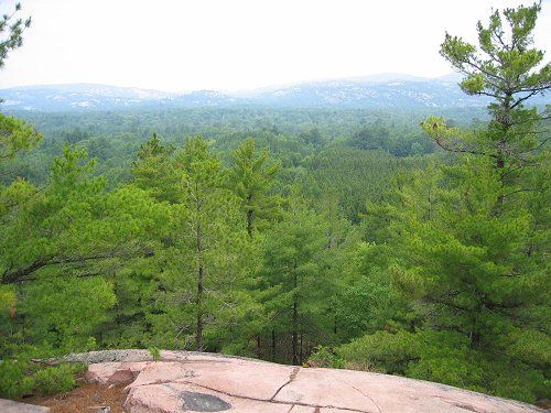 Ein 2km langer Wanderweg führt hinauf zur Granite Ridge – dort bietet sich der Blick über die große Waldlandschaften des Parks hinüber zu den La Cloche Mountains.
