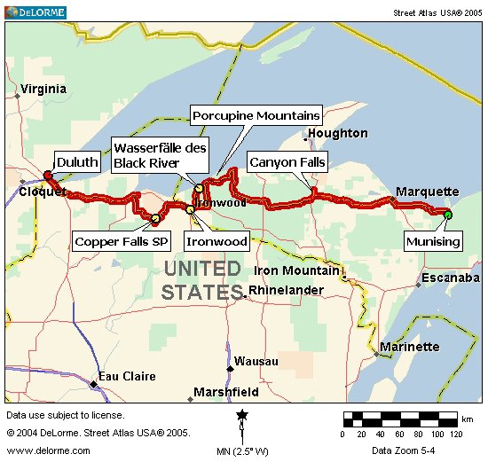 Ironworld – Vince Shute Wildlife Refuge – Orr, MinnesotaKartenübersicht der Tage 13-15