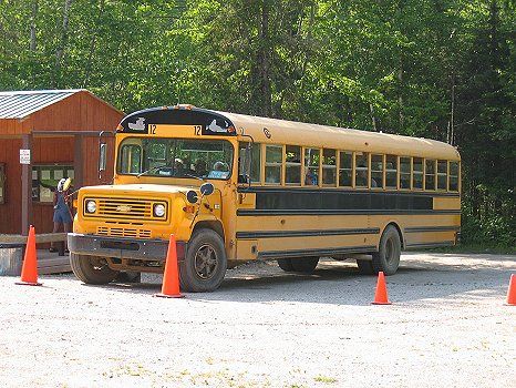 Wir steigen in einen alten Schulbus und während der Fahrt zum Aussichtsdeck erzählt uns eine ältere Dame über die Geschichte von Vince Shute.