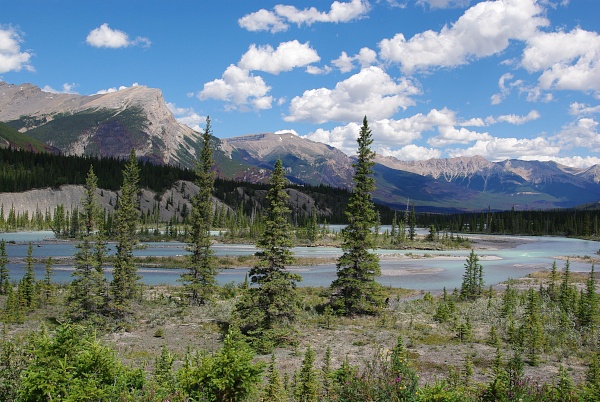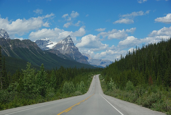 Nach den Athabasca Falls erwischen wir die falsche (alte) Straße Richtung Jasper, ist aber auch schön.