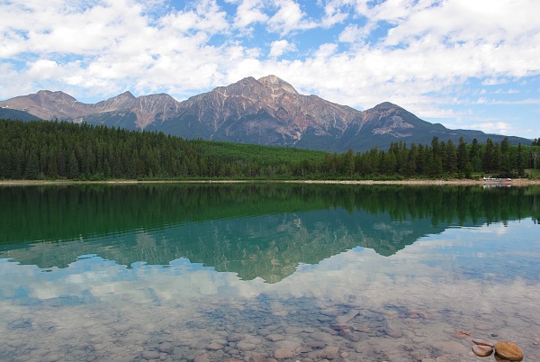 Schon vor 8 Uhr sind wir auf dem Weg zum Maligne Lake und machen einen kurzen Fotostopp am Medicine Lake.