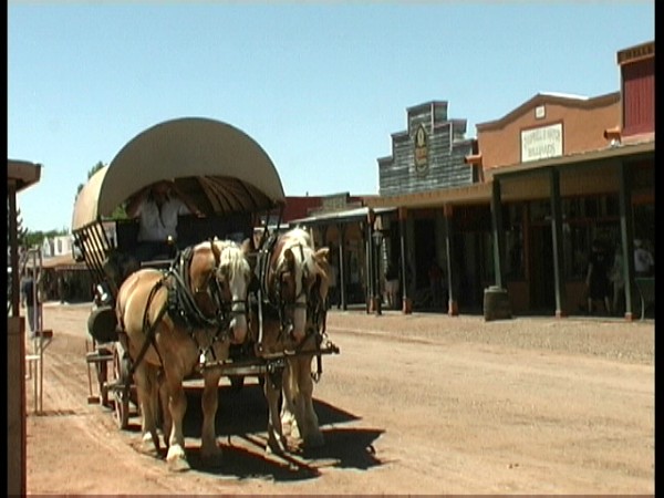 Wir verlassen Bisbee und fahren nach Tombstone. Um 14.00 h findet dort die Gunfight-Show statt, bei der die legendäre Schießerei zwischen Doc Holliday /Earp Brüdern und den Cowboys Mc Laury und Clanton nachgestellt wird. Im Eintrittspreis von $ 7,50 sind neben der Show auch ein Film über Tombstone, die Besichtigung der Ausstellungsräume und ein Zeitungsnachdruck enthalten. Die Schießerei empfinden wir nicht als Knaller, obwohl ein paar nette Gags dabei sind. Für die Ausstellung interessieren wir uns nicht so sehr und den Film, den hätten wir uns sparen können. Den Zeitungsnachdruck muss man sich in einer Parallelstraße abholen, darauf verzichten wir. Da die Schießerei in praller Sonne stattfand, sind wir geschlaucht und haben keine Lust mehr, durch Tombstone zu spazieren. Im Prinzip hätten wir mehr davon gehabt, in Ruhe durch die historische Hauptstraße, der Allen Street, zu laufen, wo sich Saloons, Restaurants und Gift Shops aneinanderreihen.