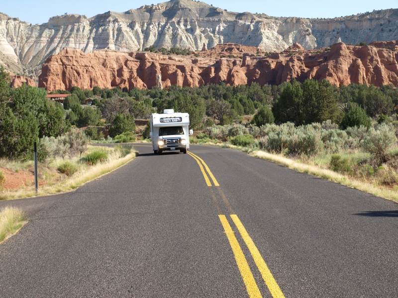 Die Fahrt zum Kodachrome Basin State Park ist kurz, d.h. ca. eine halbe Stunde. Ein sehr gemütlicher Campground, ausgesprochen liebevoll gepflegt (das Kies auf den Stellplätzen ist frisch ge-harkt, also das habe ich bisher noch nie gesehen...), sehr ruhig, extrem sauber.