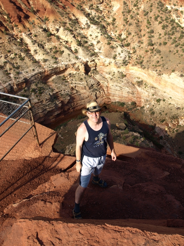 Familie Widmer fährt nun zurück zum Ruby's zum Essen, denn irgendwie wollen wir uns heute nicht mit Brötlis begnügen. Wie das Dominik nur immer macht, der haut sich bereits jetzt wieder ein Steak rein! Ermels klappern in dieser Zeit die "oberen Aussichtspunkte" wie Rainbow Point, Natural Bridge etc. ab, die wir vor zwei Jahren schon ausgiebig besichtigt haben.