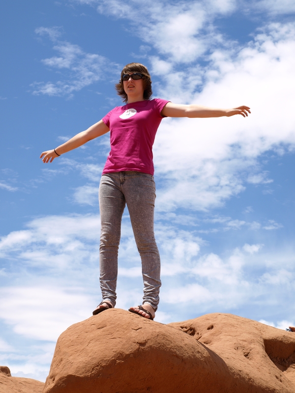 Beim Balanced Rock ein erster Halt, Flavia stellt fest, dass dieser nicht wirklich stabiler geworden ist und leistet wiederum Unterstützung.