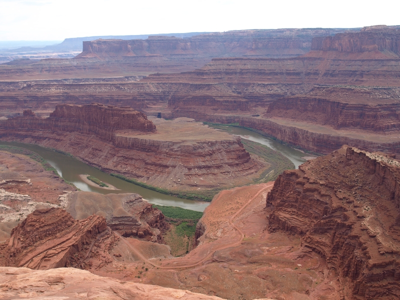und dann beschauen wir uns in seeehr dunstigem Wetter den Dead Horse Point und besuchen das dortige Visitor Center. Die Gewitter toben rund herum, aber uns erwischt's diesmal nicht.