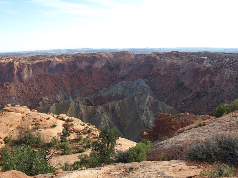 Kurz nach Acht fahren wir zum Upheaval Dome, wo wir eine kleine Wanderung dem Grat entlang machen, hin und zurück ca. eine Dreiviertelstunde. Dominik und Fabienne haben keine Lust dazu und bleiben zurück, allerdings ohne konkretes Ergebnis... offenbar haben die während dieser Zeit kein einziges Wort miteinander gewechselt  .