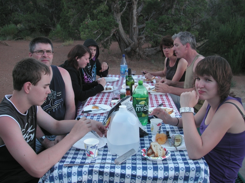 Um halb sieben beschliessen wir den Tag gemütlich auf dem sehr schönen Campground im Dead Horse State Park. Dominik bekommt von Fredu den Auftrag, den Stiel der einen Pfanne zu reparieren, welcher mittlerweile sehr lose ist. Leider gelingts nicht, Ermels müssen in Moab eine Pfanne kaufen - deren Kaufpreis anstandslos zurückerstattet wird, obwohl die neue Pfanne keinen Stiel sondern nur Griffe aufweist.