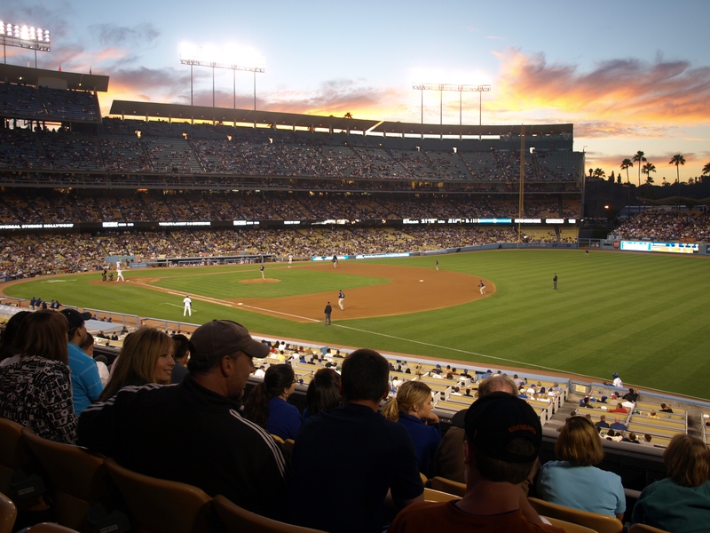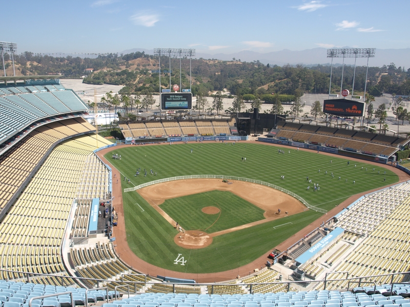 Obwohl wir schon viertel vor Neun in Richtung LA abfahren, kommen wir erst ca. um elf beim Dodgers Stadium an. Meine Idee gestern beim Nachtessen war, heute mal schauen zu gehen, ob wir hier Tickets kriegen, denn die LA Dodgers haben ein Heimspiel, zufälligerweise gegen die San Diego Padres. Die Fahrt zum Dodgers-Stadium ist echt mühsam, und bereits weiss ich wieder, wieso ich bisher noch nicht LA-Fan geworden bin... Stau, Stau, Stau. Ok, möglicherweise hängt das halt mit dem Navi von Ermels zusammen, welches uns von Highway zu Highway und somit von Stau zu Stau leitet... Zuletzt haben wir's dann aber doch geschafft...