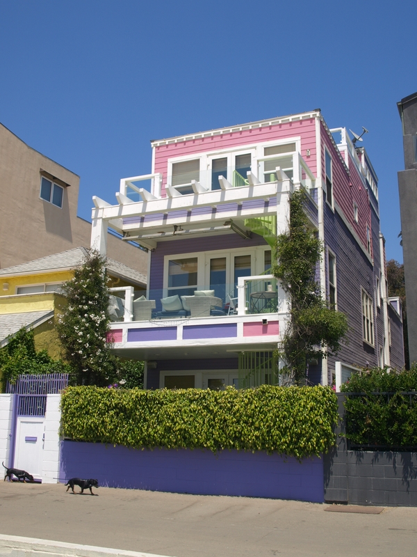 Irgendwann, so nach gut einer Stunde, gelangen wir dann zum Pacific Coast Highway und fahren südwärts. In Santa Monica mache ich kurz den Vorschlag, hier das WoMo zu parkieren und zu flanieren, doch das stösst nicht auf Gegenliebe, Ermels wollen nach Venice. Gesagt, getan, wir fahren da runter. Ganz Venice Beach verfügt aber über keinen WoMo-Parkplatz, jedenfalls nicht am Nachmittag... Die Strassen sind sehr eng und Kurven und Wenden sind schwierig. Bei der Fahrt auf einer nach aussen abschüssigen Strasse mit nach innen hängendem Strassenschild lasse ich dieses relativ hell erklingen... schöne Streif-Spuren an der Markise sind die Folge, und dies zwei Tage vor der WoMo-Abgabe  .