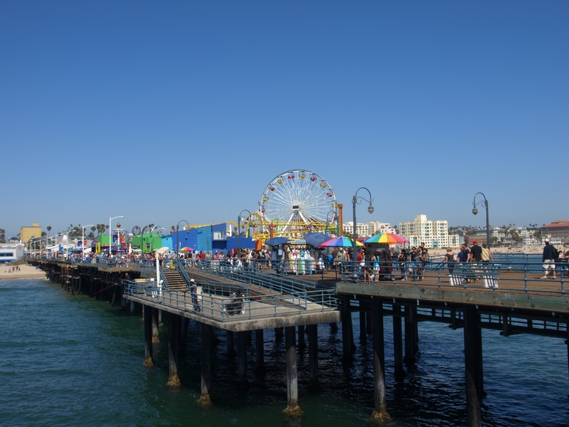 Da wir das schon letztes Mal gesehen haben und Anita gerne ein gemütliches Packen hätte, machen wir das in aller Gemütsruhe. So ist auch Anita entspannt und das hilft allen  . Wir machen uns um die Mittagszeit auf, ebenfalls nach Santa Monica, wo wir einen sündhaft teuren Parkplatz ($ 35 für RV's) in der Nähe des Pier nehmen. Bei unserem Spaziergang zum Pier marschieren wir an Ermel's RV vorbei und deponieren wieder eine Visitenkarte...
