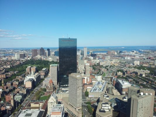 Links lässt sich das Prudential Center erahnen, rechts der John Hancock Tower.