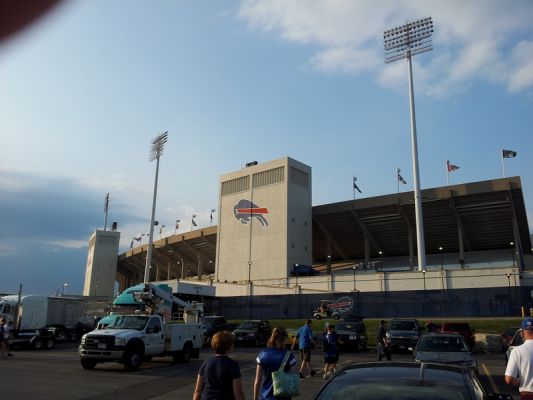 Das Stadion steht in einem Vorort von Buffalo an einer langen Straße, überall entlang ein Häuschen nach dem anderen. Und ein Bewohner nach dem anderen schwenkte Fähnchen und wollte uns auf seinen Vorgarten lotsen, welchen er wohl an jedem Heimspiel für 10$ pro Auto als Parking Lot missbrauchte  :lol: