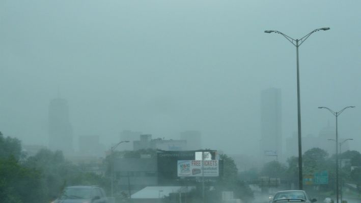 Von Foxborough ging es noch ca. 20 Minuten durchnässt und zitternd nach Boston, welches uns mit diesem wunderschönen Panorama empfing: