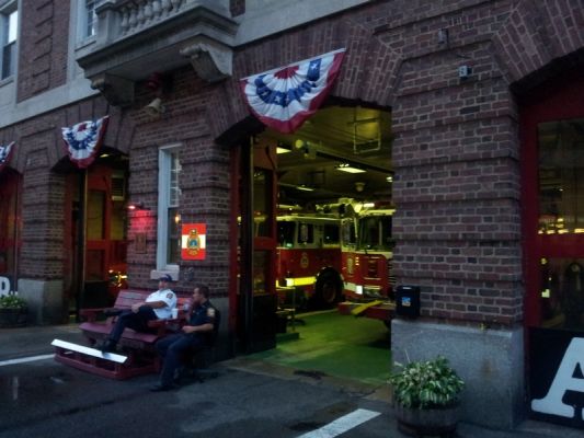Es waren auch einige Polizisten da, die haben dann auch relativ schnell den Platz abgesperrt, gab wohl irgend ne Demo oder so.
