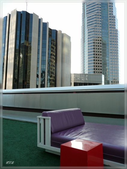 Auf dem Weg nach Downtown in unser Hotel fahren wir noch beim Wiltern Theatre vorbei, allerdings wird uns hier gesagt, dass wir unsere Karten erst ab 19 Uhr abholen können. Im Standard Downtown Hotel haben wir vor vier Jahren schon einmal übernachtet und es hat uns super gefallen. Alles ist sehr designer-mäßig und manche Leute würden beim Betreten der Zimmer wohl sagen hier wurden die Möbel vergessen. Ist aber mal was anderes und außerdem gibt es auf dem Dach die Rooftop-Bar. Das Ambiente da oben am Pool inmitten der Skyline von L.A. ist wirklich unvergleichlich. Das Gehabe des Publikums, dass sich teilweise wichtiger nimmt als es ist, muss man einfach ausblenden. Gleich nach dem Einchecken machen wir es uns jedenfalls in einer der Sofaecken mit ein paar Kaltgetränken gemütlich.