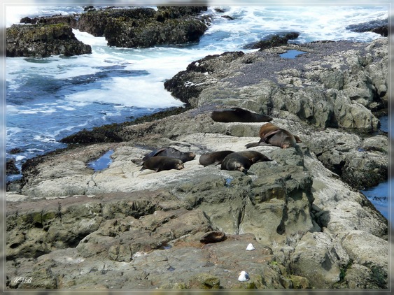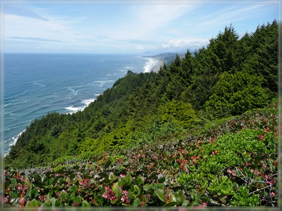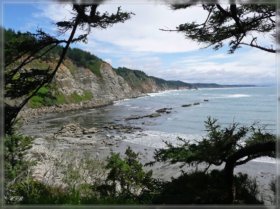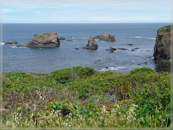 Letzter Park dieses Triples ist der Cape Arago State Park. Er besteht aus zwei Buchten - North und South Cove. Die North Cove, zu der wir zuerst gehen, ist von März bis Juli gesperrt, um die hier am Strand liegenden Seelöwen und Robben zu schützen. Von oben hat man hier aber einen sehr schönen Blick auf die Küste.