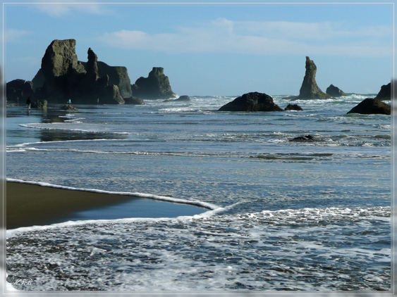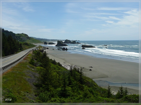 Ein traumhafter Ort! Bandon bezeichnet sich selbst als „Storm Watching Capital of the World“ und obwohl es heute alles andere als stürmisch ist können wir uns gut vorstellen, wie schön es sein muss hier einen Wintersturm aus einem der Beachfront Motels zu beobachten.