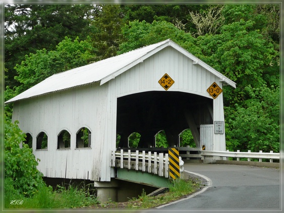 Nicht nur in den New England-Staaten gibt es Covered Bridges, sondern auch hier in Oregon. Und da eine davon sowieso auf unserem Weg liegt machen wir also unseren ersten Stopp heute bei der Rochester Covered Bridge in der Nähe von Sutherlin.