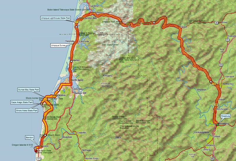 Roseburg, OR – Umpqua River Lighthouse – Oregon Dunes NRA – Sunset Bay, Cape Arago & Shore Acres State Parks – Bandon, OR