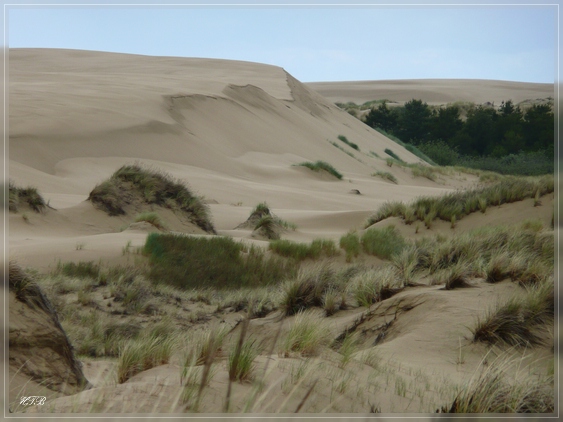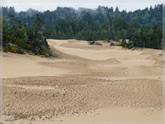 Die Oregon Sand Dunes erstrecken sich auf einer Länge von 40 Meilen an der Küste zwischen Florence und Coos Bay. Der möglicherweise beste Ort, sich die Dünen anzuschauen sind die Umpqua Dunes in der Nähe der Ortschaft Lakeside. Wir parken unseren Wagen an der Südseite des Eel Creek Campgrounds, bezahlen unsere 5$ in die Selfpay-Box und begeben uns auf den „John Dellenback Dunes Trail“. Das erste Stück führt durch einen Pinienwald und nach ca. 500 Metern recht steilen Weges erreichen wir die offene Dünenlandschaft. Phantastisch, Dünen soweit das Auge reicht!