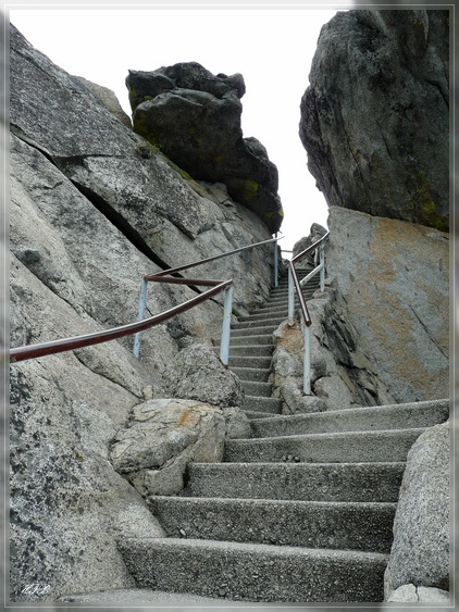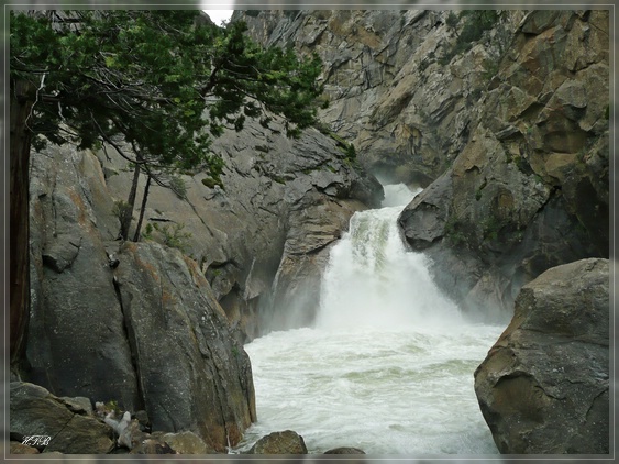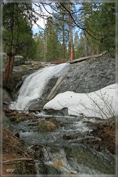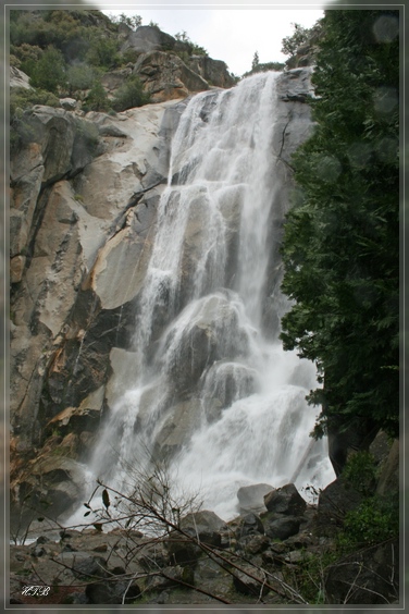 Ein Stück weiter kommen wir an die Grizzly Falls, die sehr schön über Granitfelsen herabfallen. Es ist gar nicht so einfach einen Standpunkt zu finden, an dem man einigermaßen trocken bleibt, denn der Wasserfall spritzt doch sehr.