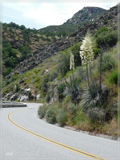 Um 9 Uhr passieren wir die Entrance Station zum Kings Canyon NP. Der Canyon selber ist übrigens tiefer als der Grand Canyon. Der Kings Canyon Scenic Byway, der „dead end“ in den Park führt, schraubt sich knapp 1.200 Meter hoch, um dann fast dieselbe Höhe wieder in den Canyon hinabzuführen. Dementsprechend ist heute wieder allerfeinstes Serpentinen fahren angesagt. Heute sitzt Caro am Steuer und sie rächt sich für gestern.