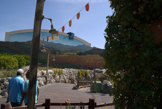 Also rechts rein, Ticket scannen und drin waren wir. Tolle Atmosphäre hier, noch recht wenig Besucher, so das man kaum anstehen musste und so sind wir erstmal in Soarin Over California rein. Da wird man quasi freischwebend vor eine Projektions-Halbkugel gehoben und darf sich die Highlights von Kalifornien aus der Vogelperspektive betrachten… sehr geil !