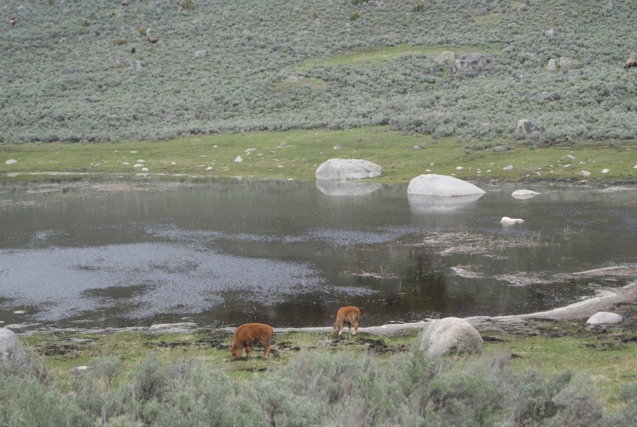 Kurz nachdem wir den Yellowstone geentert haben, sehen wir auch schon Büffel und das auch noch mit Babys!