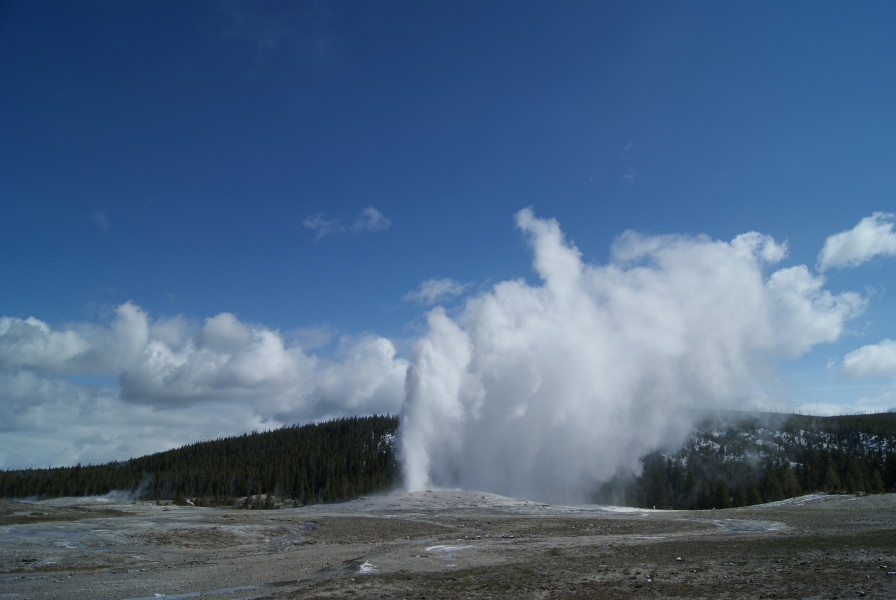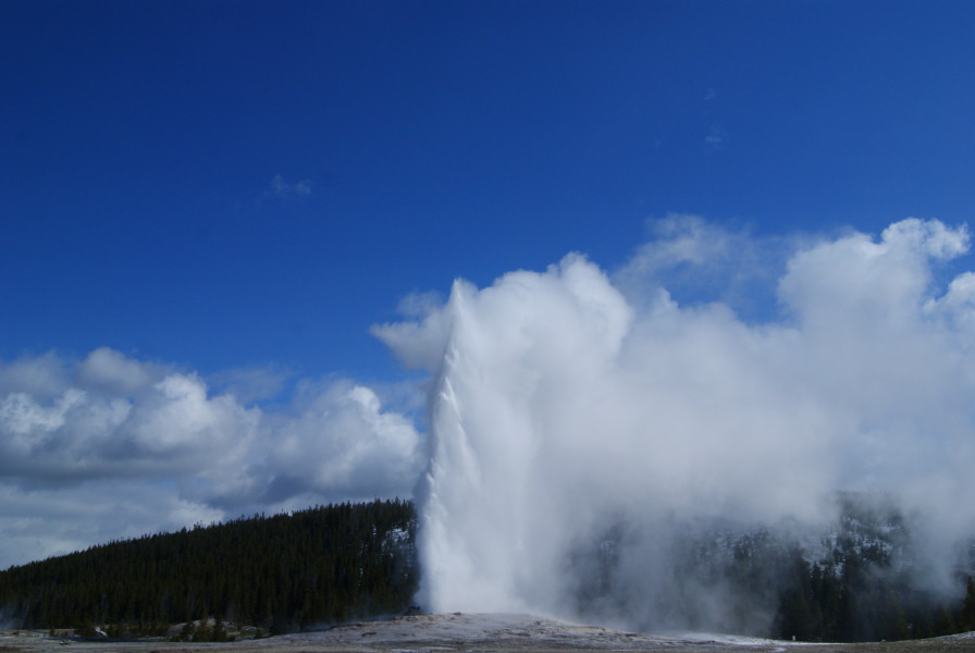 Wir machen uns auf den Weg zum Old Faithful. Der Ausbruch ist wirklich beeindruckend und dank blauem Himmel superschön anzusehen. Allerdings hätte ich mir so einen Ausbruch lauter oder zumindest zischender vorgestellt. Aber es hörte sich eher so an, als würde Faithi ausatmen und dann kam das Wasser..