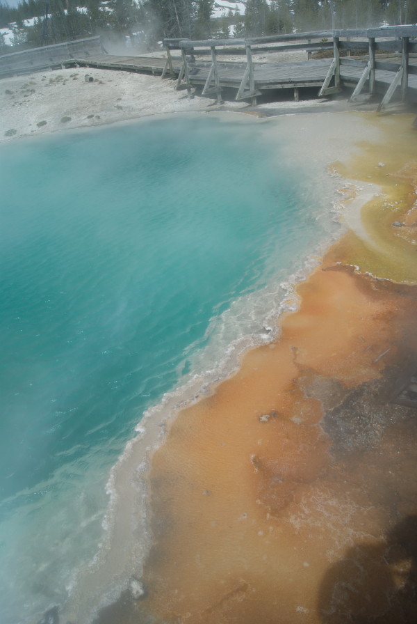 Danach gehts zum West thumb Basin, wo wir an zahlreichen bunten Pools entlanglaufen.