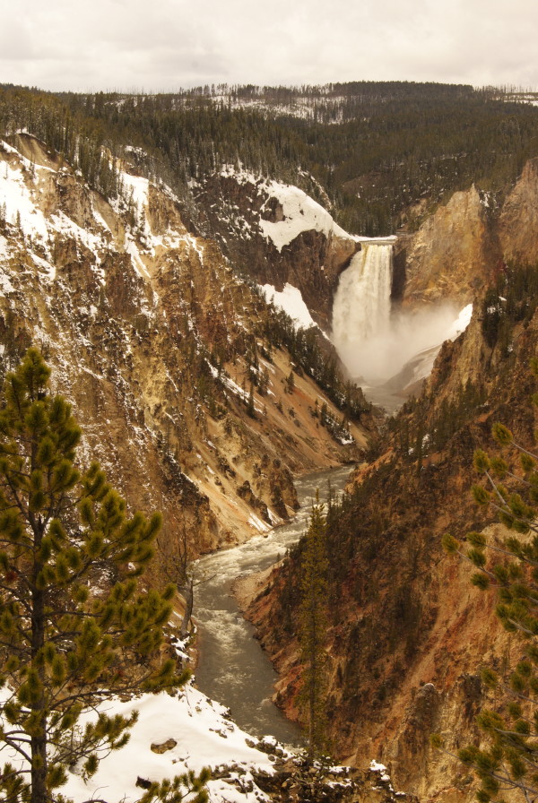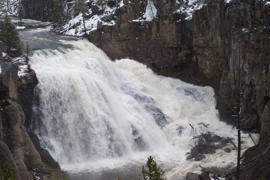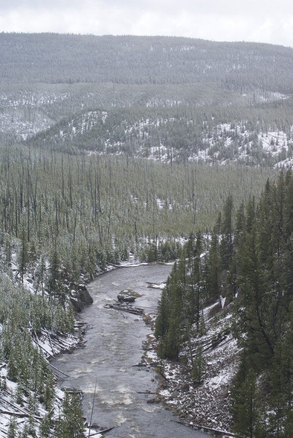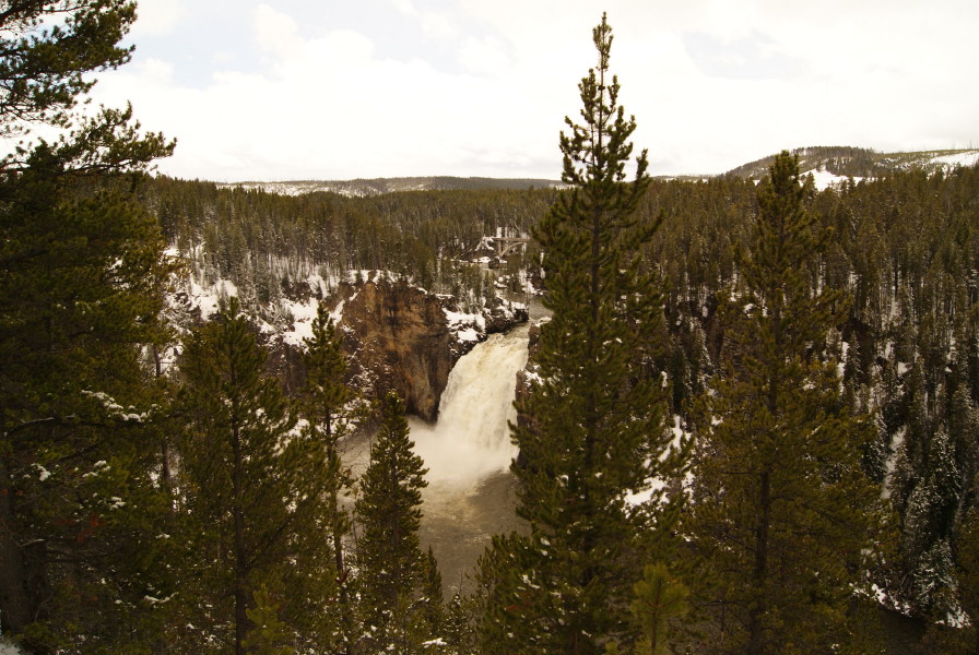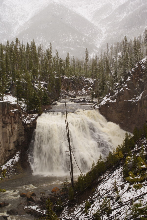 An den Gibbon Falls schneit es schon wieder, aber die Aussicht ist auch hier atemberaubend.