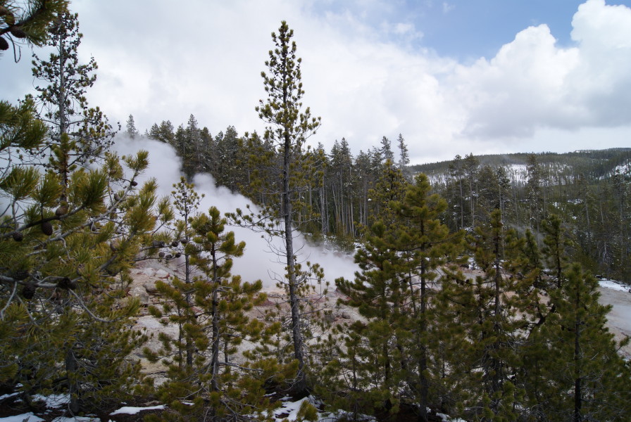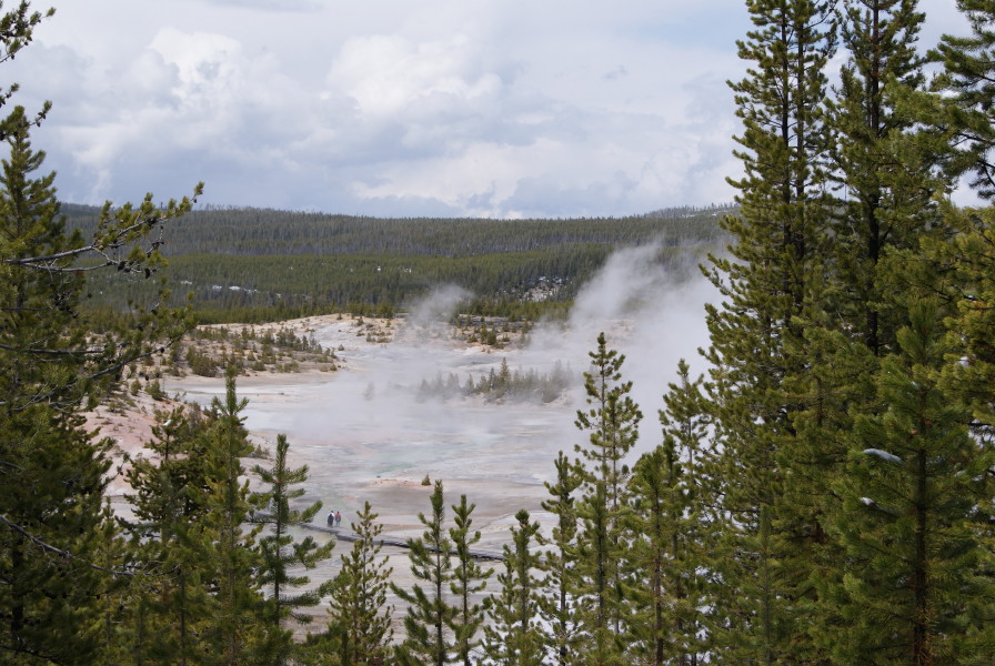 Vom Visitor Center aus hat man einen netten Überblick über das Norris Basin. Leider ist es immer noch eisekalt, weswegen auch heute viel Dampf den Blick versperrt.