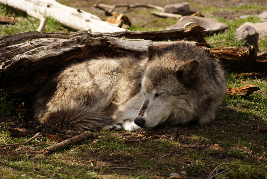 Weil ich keinen Wolf zu Gesicht bekommen habe, fahren wir nach West Yellowstone ins Grizzly + Wolf-Discovery Center. Dort werden "Problem"-Bären und -wölfe hingebracht, die nicht mehr ausgewildert werden können. Es gibt 2 Wolfs-Rudel mit jeweils 4 Tieren und insgesamt 6 Bären.
