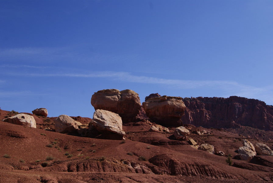 Der Capitol Reef beeindruckt mich mal wieder mit seiner Farbenpracht von tiefem rot über grau bis fast pink und cremeweiß.